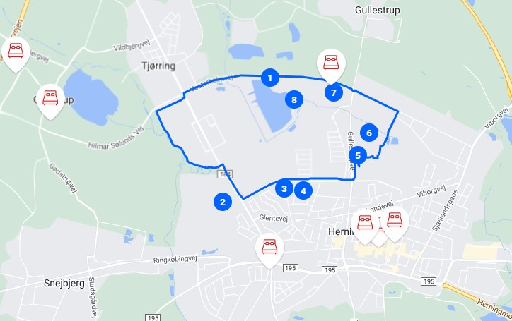 Oplev en skøn vandretur i Herning. Ruten på 9,4 km starter ved Fuglsang Sø, hvor du kan nyde roen og det rige dyreliv. Ruten fører dig videre rundt i Herning. Dette er en ideel tur for en familieudflugt.