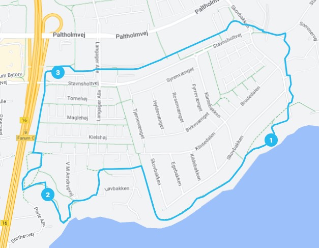 4 ruter af varierende længder, der alle starter ved Farum Arena. Ruterne tager dig med på en varieret tur rundt i Farum og byder på alt fra moderne arkitektur, historiske bygninger, naturoplevelser og smukke udsigter ud over områdets unikke landskab.