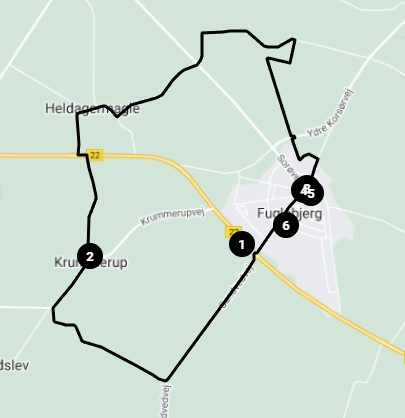 Her gar turen gennem et landbrugslandskab og forskellige minder om andelsbevægelsen. Vi går sydpå ad Sandvedvej gennem rundkørslen ved rute 22 til Flemstofte, hvor den oprindelige smedje i tiden efter 2. verdenskrig udviklede sig til en stor fabrik for landbrugsredskaber. Undervejs til Krummerup passerer vi et tidligere missionshus og den tidligere Virkelyst Brugsforening. Krummerup og Haldagermagle er typiske landsbyer. Haldager Mark og Fuglebjerglund er omåder med mange mindre landbrug. I dag drives kun de færreste som selvstændige brug. Fra Fuglebjerglund fører den gamle kirkesti over markerne og under Ydre Korsørvej tilbage til Fuglebjerg.