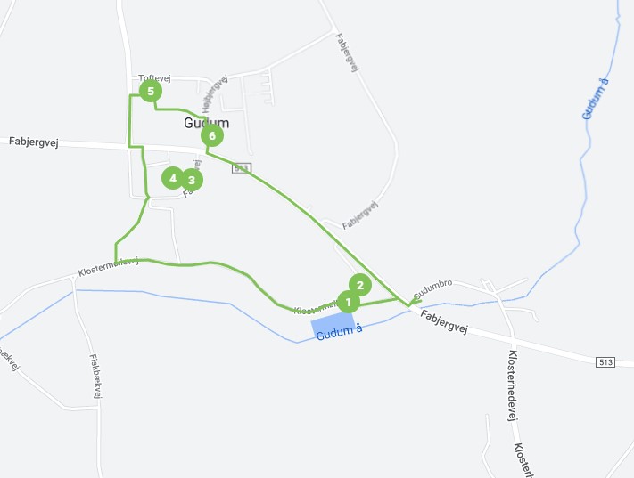 På opdagelse i det historiske og ideologiske Gudum. På Kirke/klosterruten kan du opleve en bid af områdets smukke istidslandskab, samtidig med at du får indblik i byens spændende udvikling fra fortid til nutid. Ruten leder dig forbi Klostermølle, to forsvundne klostre og en kirke med en interessant fortid, som fortsat kan spores i murværket. På turen kan du også få indblik i hvorfor der engang var to af næsten alt i Gudum