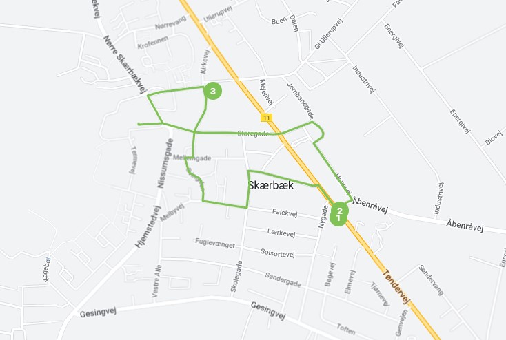 Til tops på Gasse Høje. Den lange rute inviterer til løb eller en tur på mountainbike. Vi kommer gennem forskellige naturområder, åbne marsklandskaber samt tæt eller nyplantet skov. Skov og hegn tilbyder læ og gode stop med udsyn undervejs. Vi er på vej mod Gasse Høje, der med sine 51 meter er områdets højeste punkt. Herfra har vi udsigt til Rømø, 7 kirketårne, og mod nord kan vi i klart vejr se helt til Esbjerg. Fra Gasse Høje kan vi se gravhøje. Sammen med de arkæologiske fund viser de, at her har levet mennesker i en fjern fortid. Nok så spændende er det, at vi kan komme ind i den bunker, som ligger i selve Gasse Høje. Bunkeren stammer fra 1. verdenskrig og blev bygget 1916-18 som del af den tyske forsvarsstilling mod nord; deraf navnet Sikringsstilling NORD. Området var tysk og hele anlægget strakte sig tværs over Sønderjylland. Det indeholdt i alt 900 betonanlæg med 8 store kanonbatterier og 30 mindre batterier. Formålet med anlægget var at forhindre et frygtet engelsk angreb nordfra.