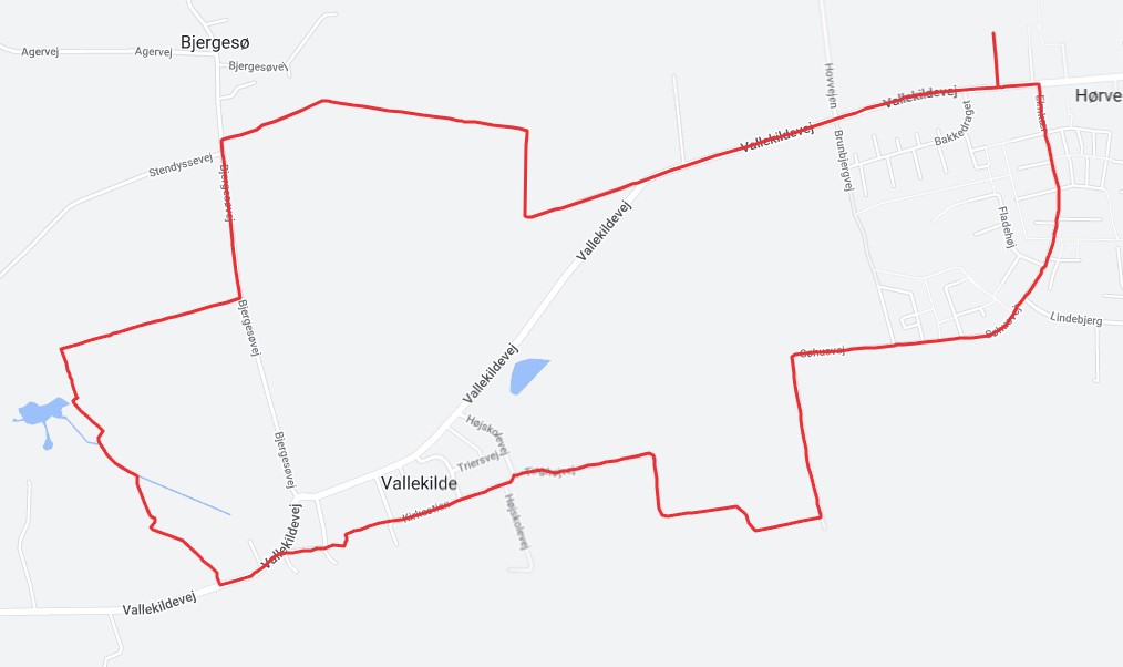 Landsbyen ved fjorden er blevet til en stationsby inde i landet. Denne vandring fører igennem det gamle Hørve, hvor kirken og gadekæret var centrum i den gamle landsby, før den efter tørlægningen af Lammefjorden udviklede sig til en stations- og handelsby. På kirkegården findes et gravsted for en familie, der har betydet meget for byens udvikling og åndsliv. Ruten følger på et stykke jernbanen, der fik så stor betydning for byens udvikling og kom til at sammenføje to små landsbyer. Du kommer rundt om de nye kvarterer i byens sydlige og vestlige del, øst om gravhøjen Brunebjerg. Her er en sti op til højen, hvorfra man kan se vidt omkring og nyde solens vandring fra opgang til nedgang. Hvis du går med barnevogn eller sidder i kørestol, skal du nok vælge grusstien vest om Brunebjerg i stedet for græsstien langs den indhegnede mark.