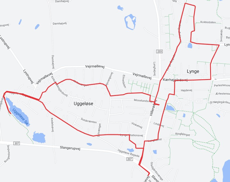 Du kommer forbi den smukke Mølleådal, det nye naturområde ved Lynge Grusgrav og den 1000 år gamle tårnruin ved Bastrup Sø. Og undervejs passerer du også Europas største drive-in bio! Du slutter ved den fredede Kedelsø-Langsødal med dens unikke tunneldal.