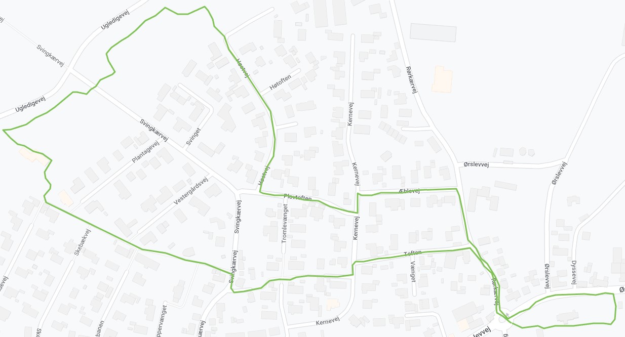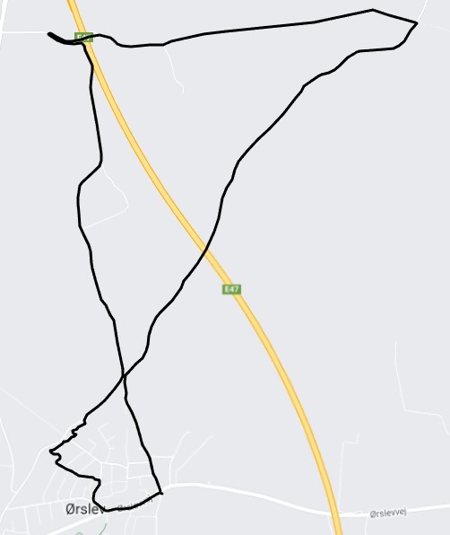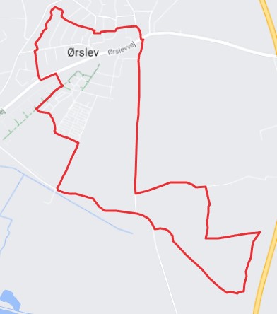 Turen går syd om Ørslev gennem Troldbjerg Skov og forbi Ørslev Mose. Fra kirkepladsen følger du Rynke- bjergvej med en flot udsigt. Undervejs passerer du forbi den velbevarede sten- dysse Rynkebjergdyssen. Turen fortsætter ad Ellerødvej og videre rundt i Troldbjerg Skov, som er afgrænset af et fredet stengærde, etableret i 1805. I skoven kommer du forbi Femvejsstenen og gamle hulveje. Ved Kohavevej lå der oprindeligt et fælles overdrev. Du følger Fragevej nord for Ørslev Mose, hvor byens gårde hver især havde en moselod. Efter 2. verdens- krig tog dræningen fart, og mosejorden blev omdan- net til agerjord. Turen går tilbage ad en sti langs et markskel, forbi Lerbjergsøen og gennem den sydlige del af 100 meterskoven. Du følger en cykel-gangsti tilbage til Smedetoften og videre ad Toften.