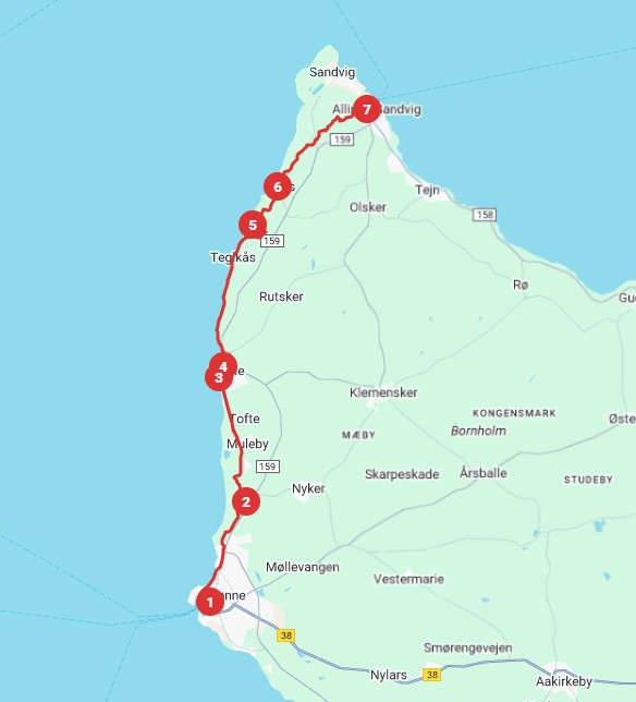1. Etape starter på havnen i Rønne, og tager dig igennem øens vestside op til Allinge-Sandvig Rønne tilbyder en fascinerende historisk rejse med middelalderhavnscharme, kunsthåndværk, museer og arkitektoniske perler. Byen er Bornholms største, og er beliggende ved en naturlig havn på øens vestkyst – oprindeligt nævnt i 1277 og officielt erklæret købstad i 1327. Byen voksede op som vigtigt handelscentrum i middelalderen med besøg af bl.a. hanseatiske skibe og en udviklende industri inden for keramik, ur‑ og granitfremstilling i 1700‑ og 1800‑tallet. I dag lokker Rønne med brostensgader, charmerende bindingsværkshuse og et pulserende havnemiljø. Ved ankomst til byen møder du Sct. Nicolai Kirken, som præger bybilledet ved havnen. Kirken er bygget på 1200‑tals fundament og er sidenhen gennemgået en ombygning i 1915. Rundt om i bymidten findes historiske perler som Erichsens Gård, fra 1806 der byder på museum og kunstneriske historier, og Rønne Teater, fra 1823, som er Danmarks ældste, stadig fungerende provinsteater. Derudover rummer byen spændende museer, herunder Bornholm Museum og Forsvarsmuseet, der fortæller øens historie fra jernalder til besættelse og efterkrigstid – inklusiv Sovjetbombardementet i maj 1945 og tysk- og svensk indflydelse i 1500‑tallets købstadsliv. Rønne huser i dag ca. 13.675 indbyggere, og byen fungerer stadig som administrativt, kulturelt og kommercielt centrum for hele øen.
