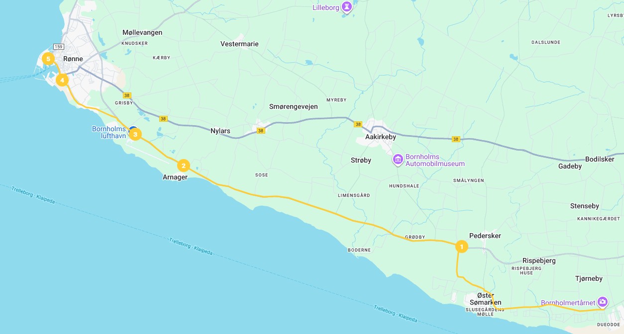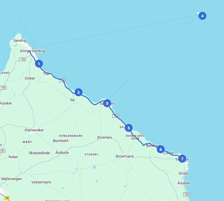 Etape 4 af Bornholm Rundt starter i Dueodde og fører dig tilbage til Rønne over en strækning på 30 kilometer. Ruten er hovedsageligt asfalteret med 91% af vejen dækket af asfalt, mens de resterende 9% er grusstier. Cyklister vil opleve en samlet stigning på 120 meter og et fald på 139 meter. Et af de første bemærkelsesværdige stop på denne etape er Pedersker, hvor du kan besøge det, der formodes at være Bornholms ældste kirke. Videre på ruten ligger Arnager, hvor du kan krydse Nordeuropas længste træbro over åbent hav, som strækker sig over 180 meter og forbinder havnen med kysten. Når du nærmer dig Rønne, er der flere kulturelle oplevelser at dykke ned i. Besøg Hjorts Fabrik – et levende keramikmuseum, hvor du kan opleve kunsthåndværkets skønhed og historie, eller Bornholms Forsvarsmuseum, hvor du kommer helt tæt på Bornholms spændende militær- og krigshistorie. Selvom denne etape er 30 kilometer lang, bør du forvente en varighed på 2-3 timer, afhængigt af dit tempo og antallet af stop, du vælger at tage undervejs.