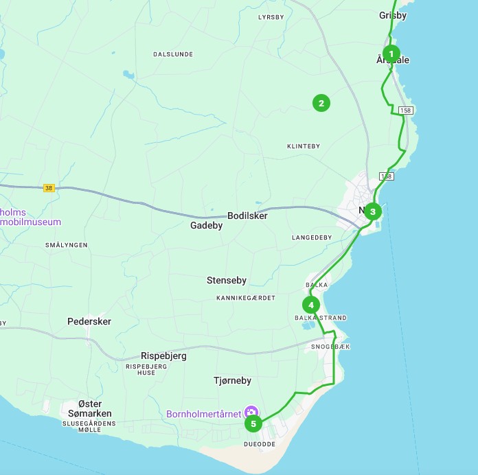 Etape 3 af Bornholm Rundt tager dig fra Svaneke til Dueodde over en afstand på 20 kilometer. På denne strækning vil du opleve en næsten fuldstændig asfalteret vej, da 94% af ruten er asfalt, mens de resterende 6% er grusstier. Cyklister vil støde på en moderat stigning på 98 meter og et fald på 83 meter. Undervejs er der flere kulinariske oplevelser at dykke ned i. Hvis du i dit stop i Svaneke har besøgt Svaneke Røgeri, gemmer sig der igen i byen Arsdale endnu et. Aarsdale Røgeri er endnu et fremragende sted at prøve den røgede sild, som Bornholm er så berømt for. Efter at have smagt på øens delikatesser kan du fortsætte til Dueodde strand, som er kendt for sine kilometerlange strækninger af fint, hvidt sand. Det er en strand, der er lige så berømt som den bornholmske sild. Endnu en bemærkelsesværdig perle på denne etape inkluderer Balka Strand. Nexø, øens næststørste by, ligger også på denne rute og tilbyder en blanding af kultur og historie. For dem, der ønsker at strække benene og tage en pause fra cyklen, er en vandretur i Paradisbakkerne en fantastisk mulighed for at opleve nogle af Bornholms mest maleriske landskaber. Selvom denne etape kun er 20 kilometer lang, bør cyklister forvente en varighed på 1-2 timer, afhængigt af tempo og antal stop.